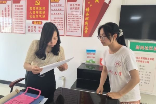 在对园艺村留守儿童调研的收尾工作中,留守儿童调研组组长陈志梅指出,要抓住访谈细节,仔细分析并得出结论。探讨结束后,调研组针对各位儿童的情况,完成了专属信件的撰写。“可为青年”队队长刘曼妮强调,在信件中应插入防溺水、爱国教育等内容,行文过程应仔细斟酌,将儿童的心理感受摆在第一位。随后,陈志梅与调研组组员王姝尹前往新民社区、东湖社区党群服务中心与上述两个社区党群服务中心联络员交接工作并获取留守儿童摸底表。