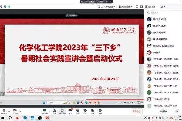 (通讯员 蔡紫婧)6月28日14时30分,2023年三下乡宣讲会暨启动仪式于腾讯会议举行。院学工办主任欧阳唯一、院团委书记张婧、2019级辅导员唐健清、2022级辅导员谢云霞、院团委社会实践部成员及2023年三下乡暑期社会实践队伍全体成员参加此次会议,会议由院团委社会实践部周倩妮主持。