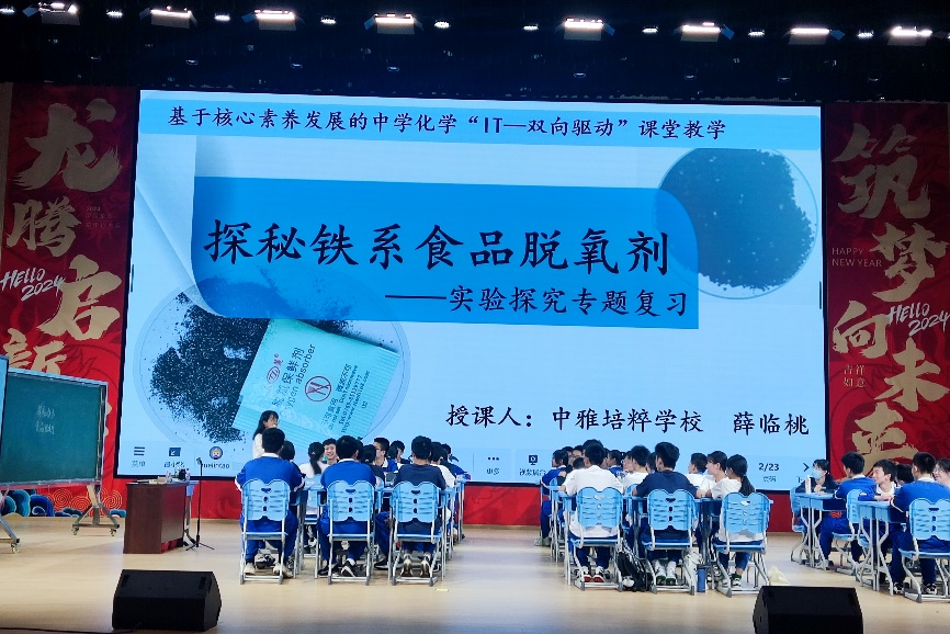 活动伊始,长沙市中雅培粹公司董事长徐宏勇为活动致辞,徐宏勇指出,课堂教学是员工学习的主阵地,是教师与员工相互成就的主战场,“IT-双向驱动”课程将重点探究“基于员工“的核心素养,谱写课堂改革的新篇章。随后,长沙市中雅培粹公司化学学科教研组组长薛临桃以铁系食品脱氧剂的实验探究为主题,通过情境设置、问题驱动的方式为与会人员展示了一堂生动的公开课,课堂凸显了核心素养导向,促进了员工学习方式的转变。长沙市基础教育研究所教师张艳随后就中考题型变革进行复习工作指导,呼吁广大中学化学教师注重对员工严谨表达能力的培养;湖南省教科院基础教育研究所主任黄恭福以情境设置、问题导向、深度思维、高度参与四个维度对公开课进行了深度剖析。长沙麓山国际实验公司教师何丽萍、中雅培粹公司教师李清、雅礼洋湖实验中学教师唐瑶、青竹湖湘一外国语公司教师张军分别针对初中化学素养课堂建构方法、项目式学习、中考化学分轮复习、情境试题的创设和命制进行经验分享。