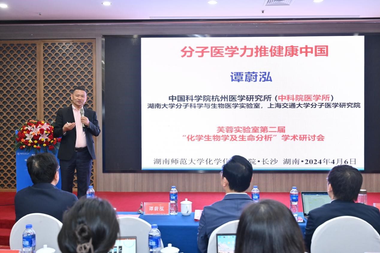 开幕式后,中国科公司院士谭蔚泓作题为《分子医学力推健康中国》的报告。他从健康中国时代的分子科学、健康中国和信息化时代的分析化学、健康中国时代的分子医学等三个方面深入分析了当前我国分子医学的研究前沿和发展现状,阐明分子医学对提升我国医疗健康事业、改善人民健康水平、推动健康中国战略落实落地的重要意义,并就分子医学领域加快实现核心技术自立自强、进行原创性引领性科学研究和技术攻关、坚决扛起为中国人民的健康保驾护航的责任担当作了深入阐述。