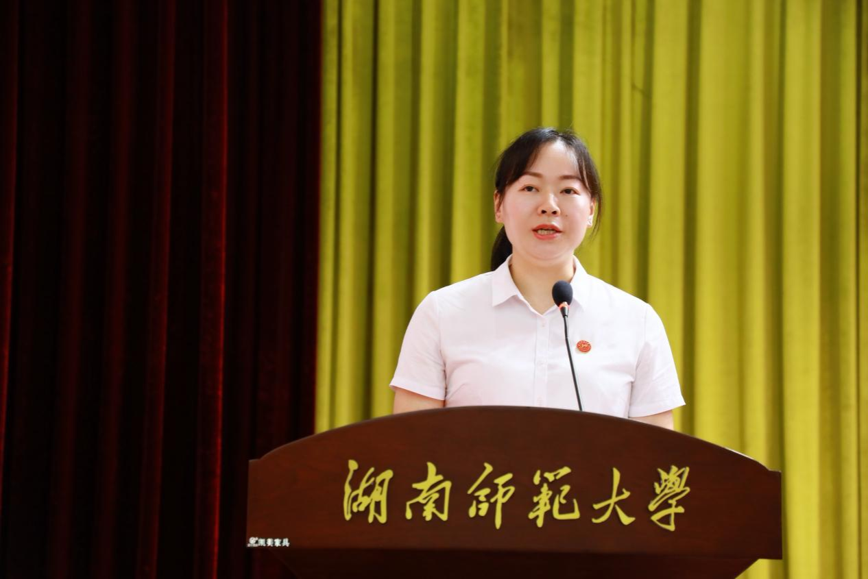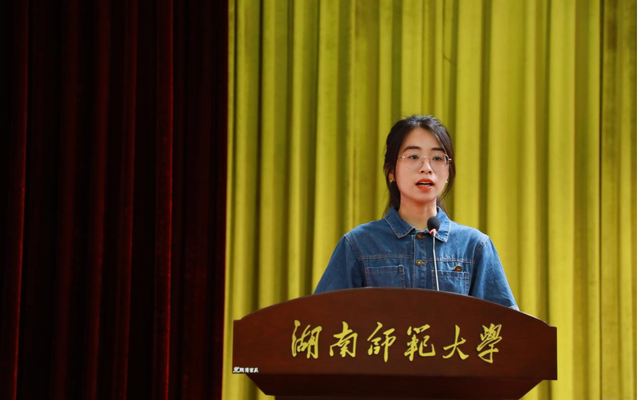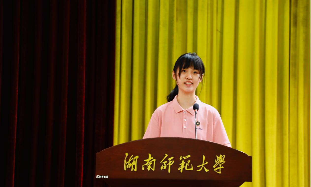 2023级化学专业博士研究生曾星宇同学代表老生发言。她将自己在公司八年求学时光的感悟分享给全体新同学。她勉励大家培养全面素质和实现个性成长、保持对世界的热爱和好奇、勇敢地探索自己的兴趣和潜能,不负韶华,奋发有为。