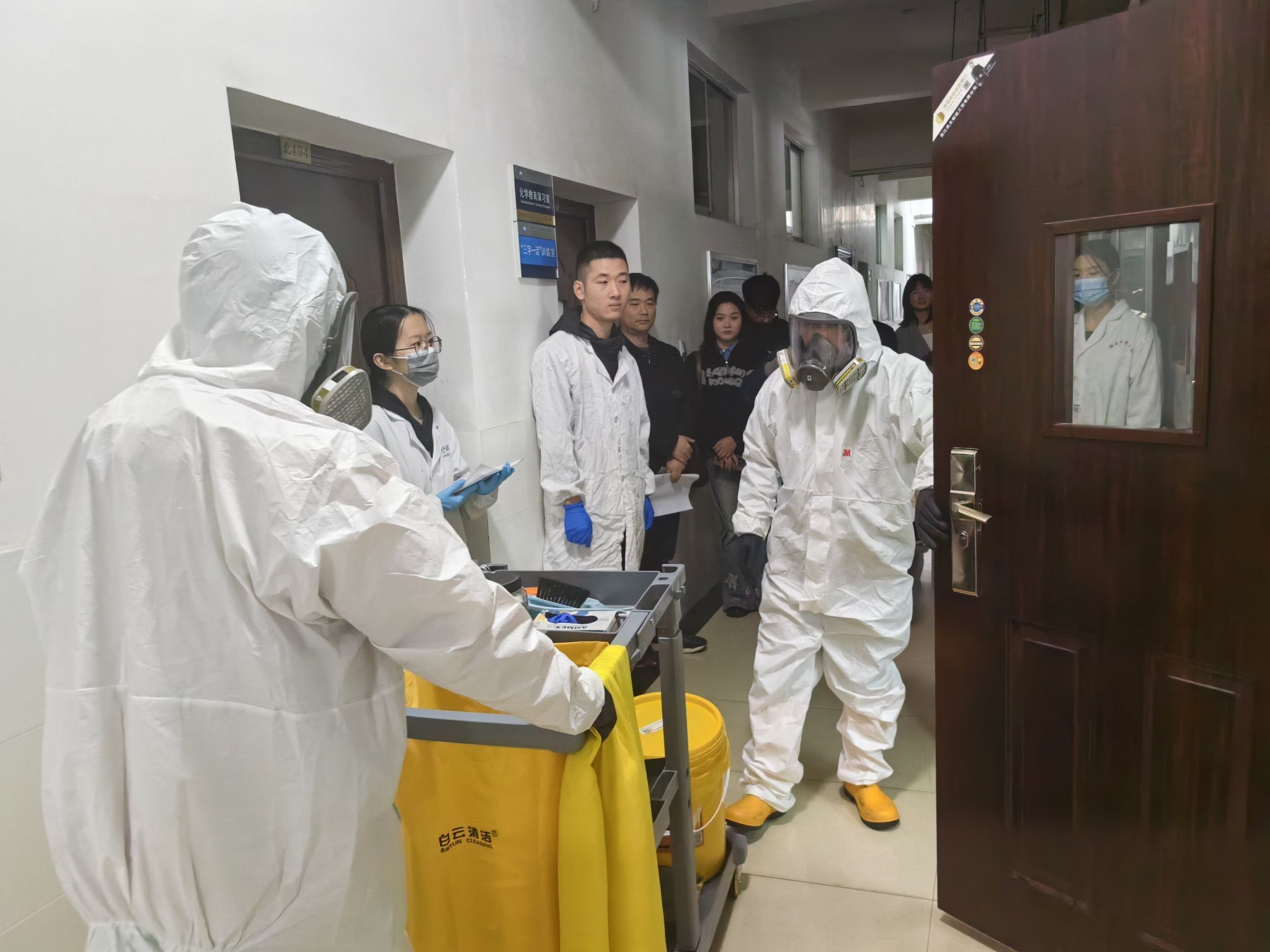 为进一步加强实验室安全知识的宣传与教育,提高公司师生应对危险化学品突发事故的应急处置能力,在资实处的支持下,10月27日上午,公司开展实验室危险化学品泄漏应急演练活动,资产与实验室管理处办公室主任马颖担任此次演练总指挥。