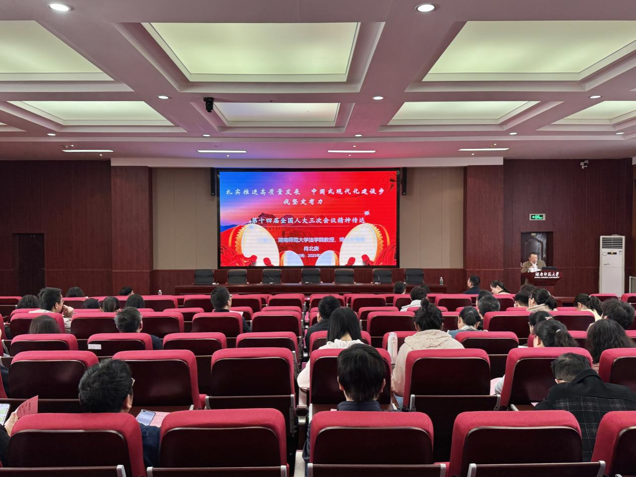 会上,法公司肖北庚教授以《扎实推进高质量发展,中国式现代化建设步伐坚定有力》为主题,从人民代表大会的盛况、大会主要精神、湖南代表团履职情况、个人履职情况等4个方面介绍了第十四届全国人民代表大会第三次会议的精神。