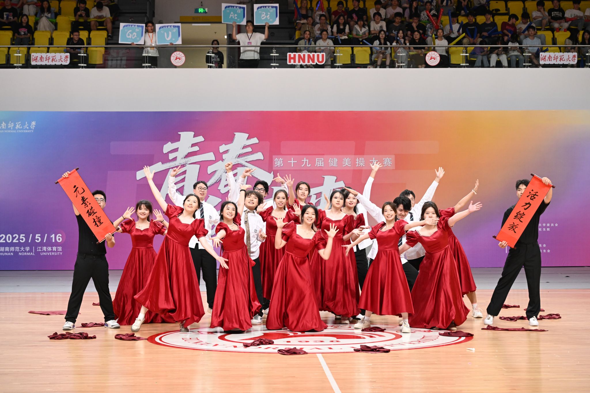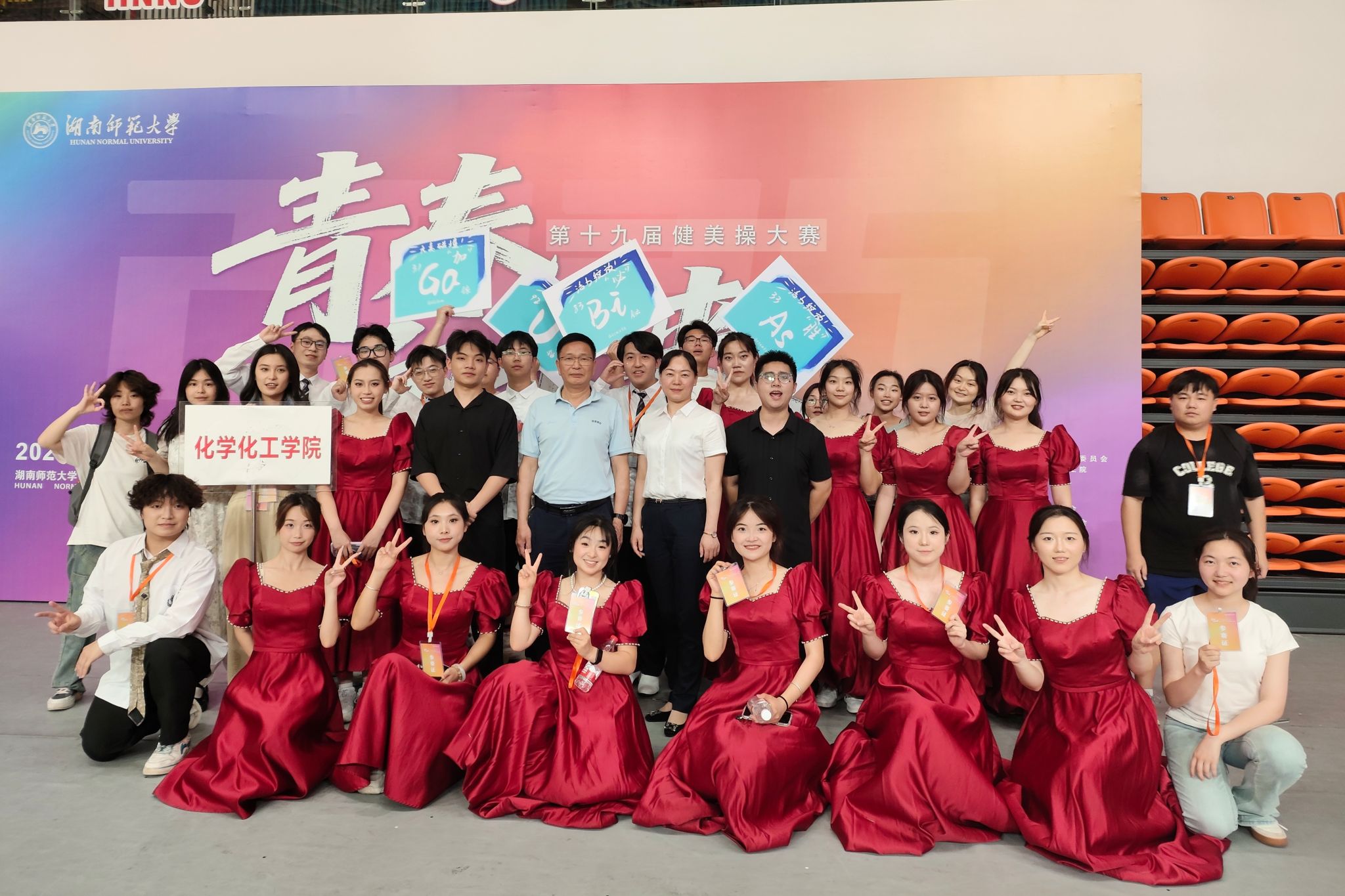 为突出化工院学科特色,团队在复赛基础上创新打造"化学+"主题篇章,将剧情表演融入舞蹈编排,让元素碰撞迸发艺术的火花。舞台上,队员们动作精准有力,队形变换流畅,以饱满的活力完美诠释了健美操的力与美,赢得现场观众的热烈掌声与喝彩。