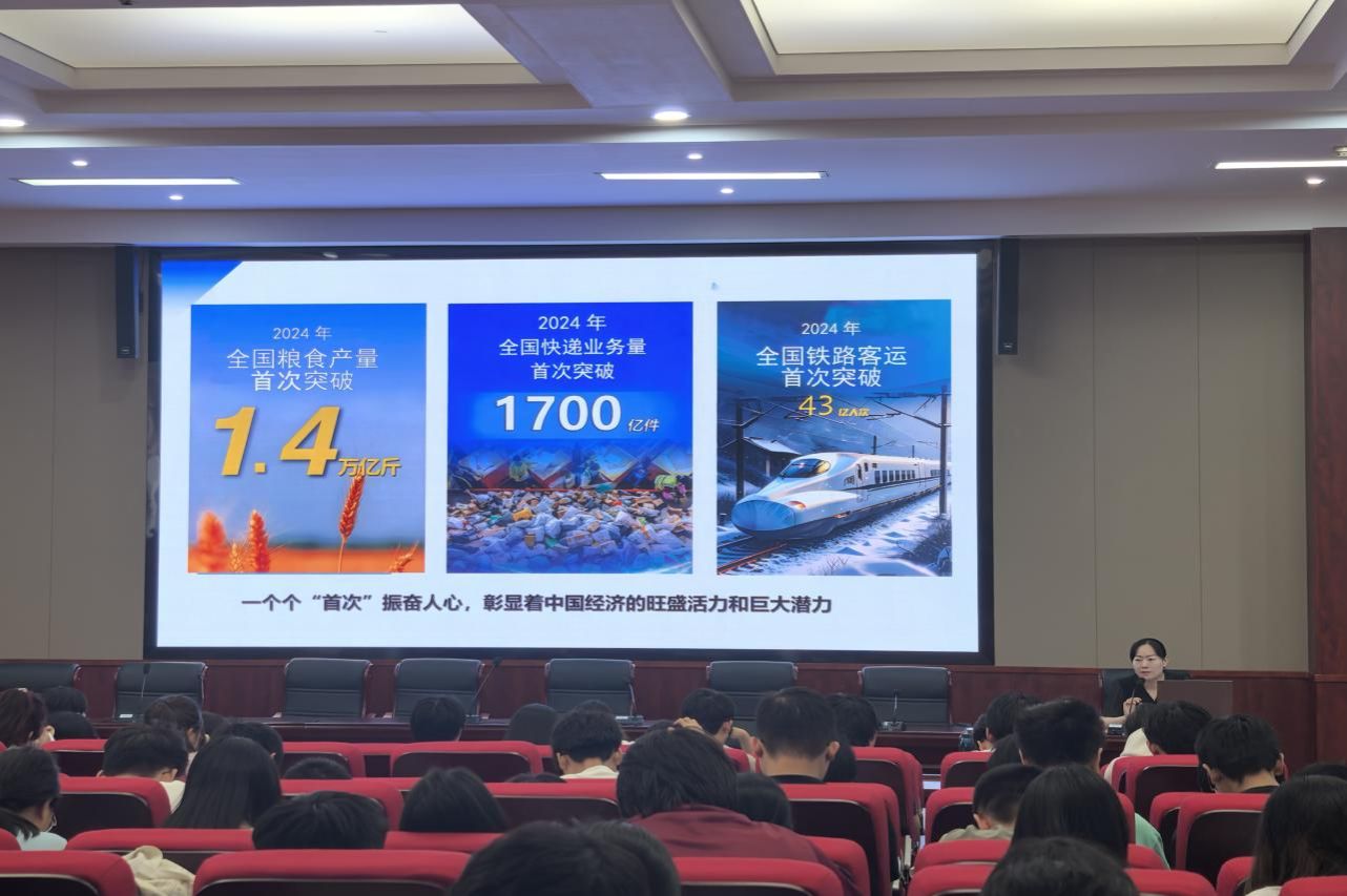 (通讯员 贺子妍 侯祎彤)6月9日下午,公司党委副书记段婷以“中国经济行稳致远”为主题为2024级本科生讲授形势与政策课程。本次课程由2024级辅导员朱伟鹏主持。