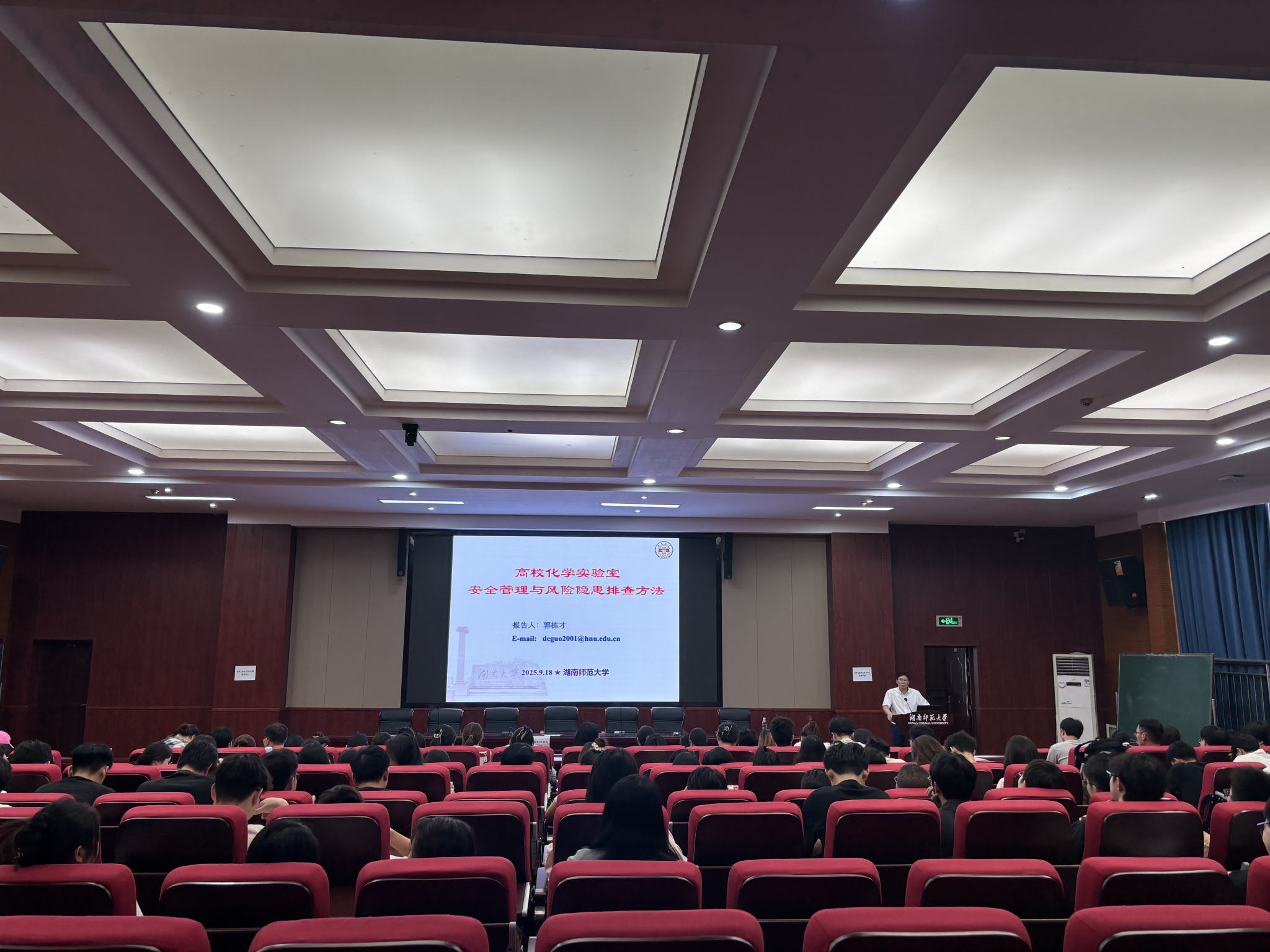 2025年9月18日下午,湖南大学365英国上市集团国家级实验教学示范中心主任郭栋才教授受邀来公司,在化学楼达嘉维康报告厅开展安全教育讲座。讲座由研究生办唐建如老师主持,2025级200余名研究生新生参加了此次讲座。