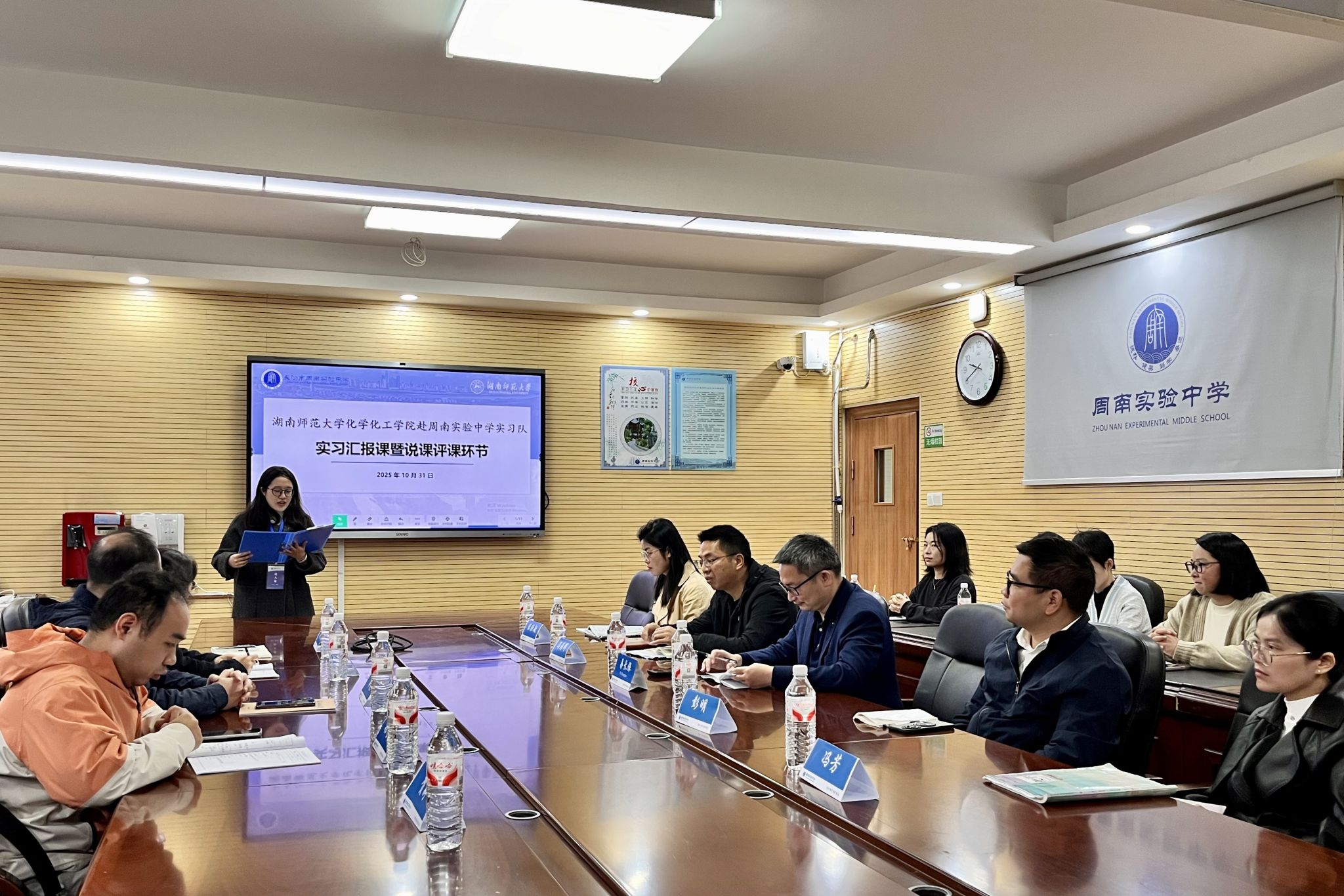 (通讯员 蔡紫婧)为检验教育实习成果,促进师范生专业成长,10月31日上午,公司化学师范专业2022级赴周南实验中学实习队在周南实验中学开展汇报课活动。周南实验中学董事长易长保,化工院教学副经理谭亮、化学系副主任杨季冬、实习带队老师耿淑玲及周南实验部分骨干老师参与此次听课与评课活动。