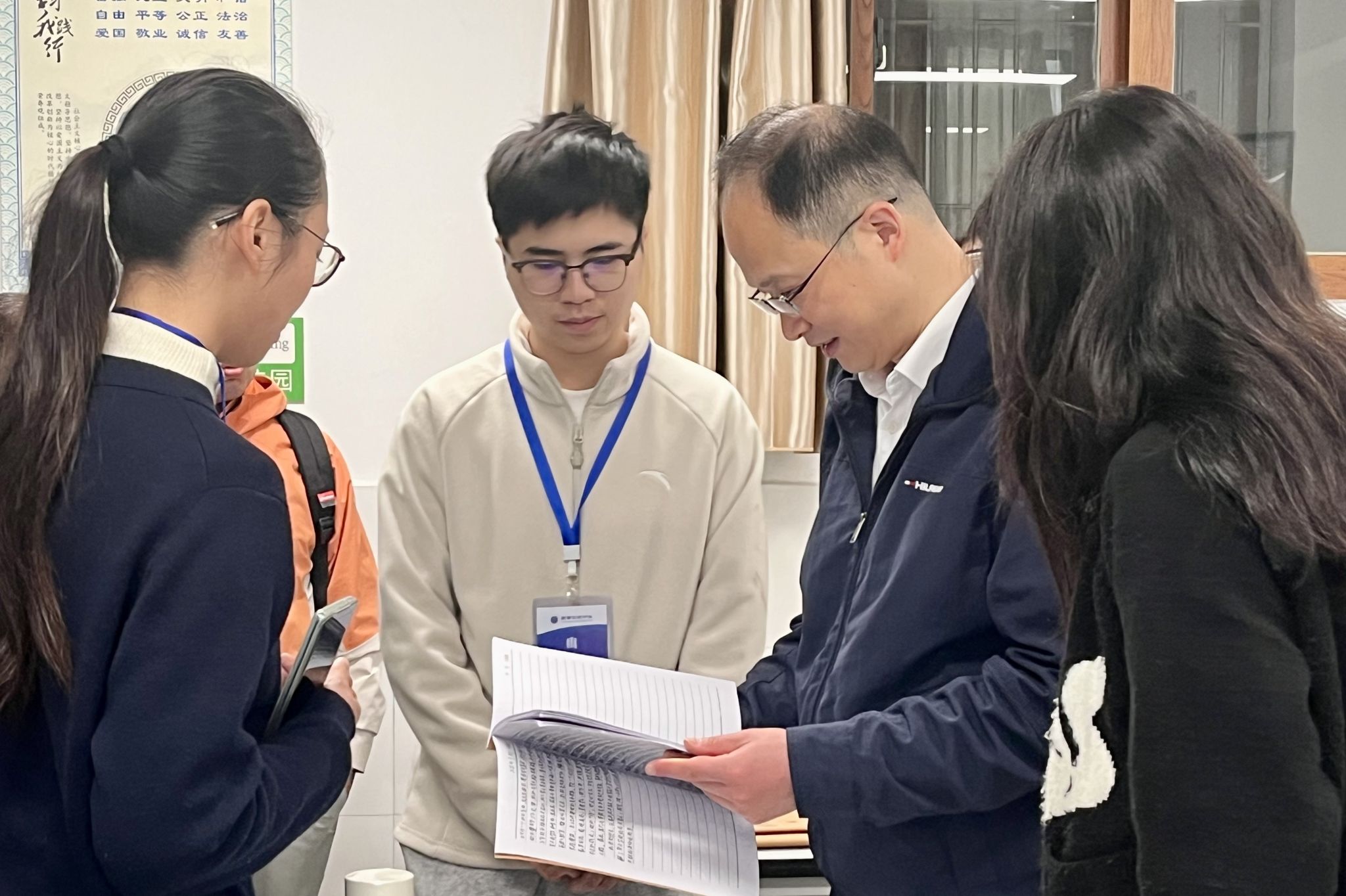 实习队队长蔡紫婧主持说课评课活动。贺婷系统阐述了自己的教学设计思路。各位领导和老师从多个维度进行专业点评,就教材深度解读、课堂动态处理、员工互动模式等方面提出了具体改进建议,为实习生专业发展指明了方向。