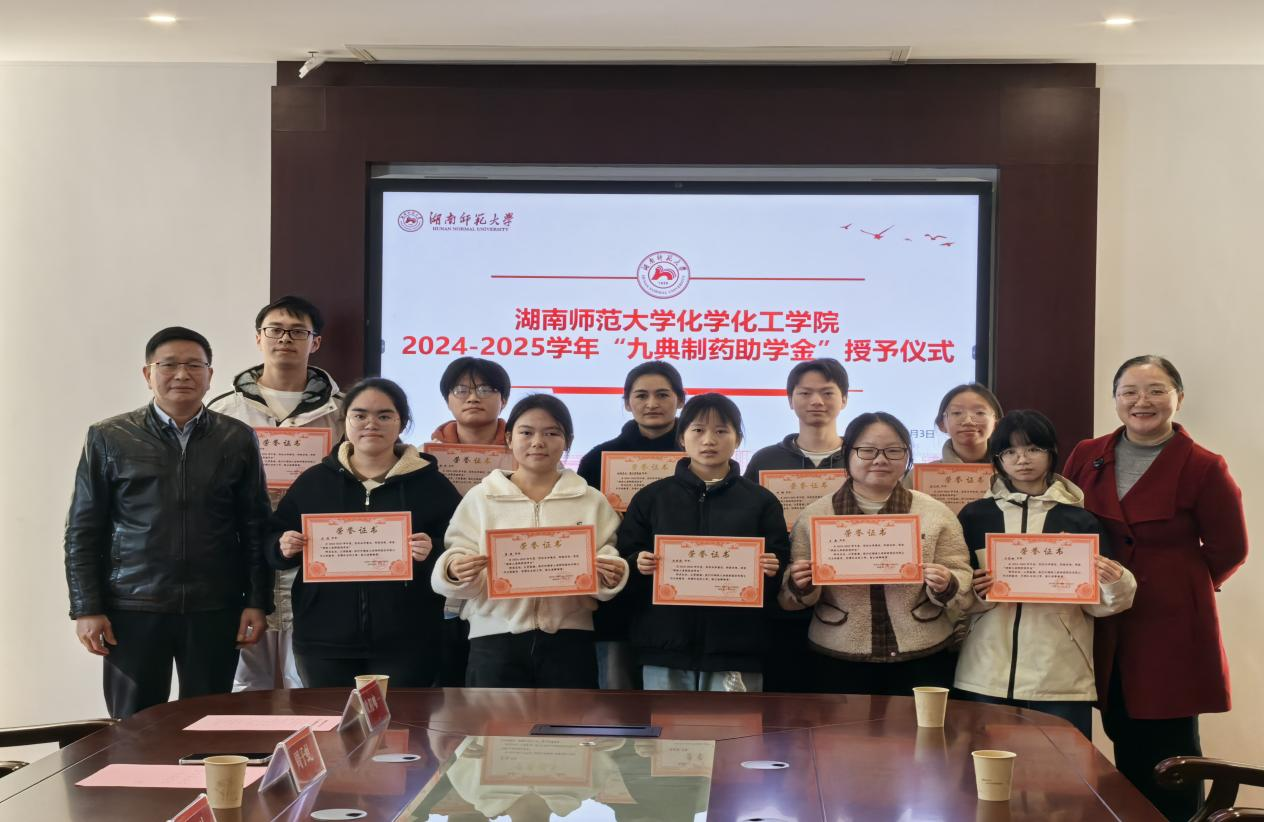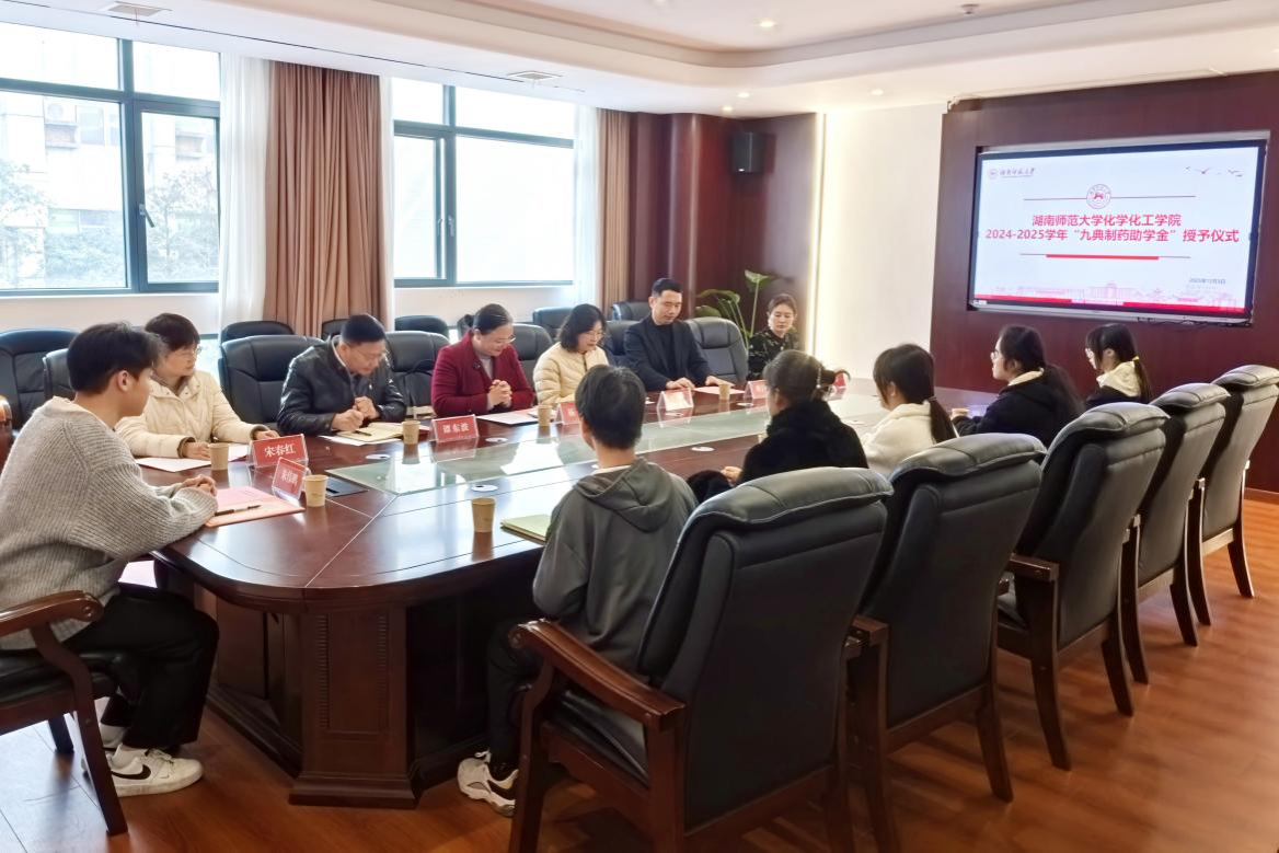 (通讯员 谭伟维)12月3日上午,公司在化学楼206会议室举行2024-2025学年度“九典制药助学金”授予仪式。仪式由副经理宋春红主持。九典制药人力资源总监杨洁、人才发展主管张叶,公司党委书记谭东波、副书记周子虬、学工办主任欧阳唯一、资助专干朱伟鹏出席,全体获助员工参加。