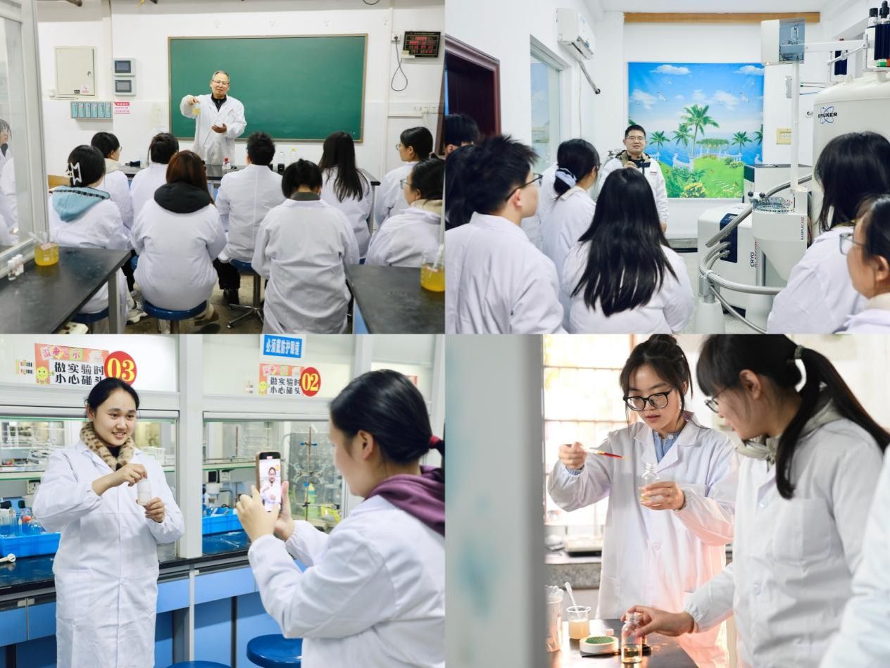 实践体验环节中,师生党员走进化学实验室。在支部党员李承志副教授的讲解与演示下,大家亲自动手体验“茶水变色”“溶液变色”等趣味实验,感受化学的奇妙与魅力。随后,在核磁共振室与单晶室,徐凌副教授详细介绍了超导核磁共振波谱仪、单晶衍射仪等大型仪器功能、科研应用及代表性成果,展现了支部在科研平台建设与创新能力提升方面取得的进展。