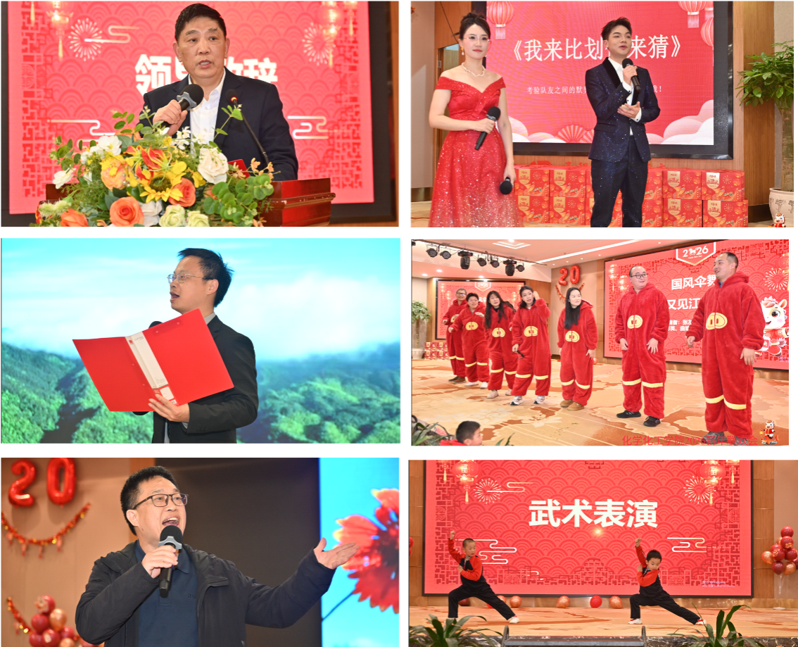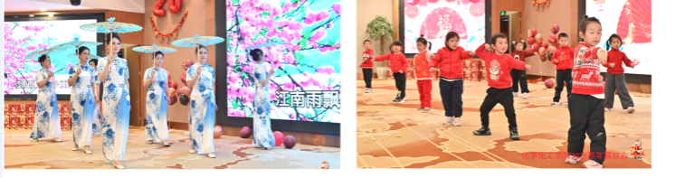 会场布置精美,红火喜庆的装饰与温馨雅致的陈设相得益彰,浓浓的年味扑面而来。16时15分,联欢会正式拉开帷幕。新进教师代表首先登台,深情朗诵了毛泽东主席的《水调歌头·重上井冈山》与《念奴娇·昆仑》,铿锵的词句、真挚的情感,展现了公司新生力量的蓬勃朝气。随后,丰富多彩的文艺节目轮番上演:合唱歌声嘹亮,舞姿优美动人,子弟的武术表演虎虎生风、蓬勃朝气,特别是典雅温婉的旗袍秀,将江南韵致与表演者的绰约风姿完美融合,赢得阵阵掌声与喝彩。活动中穿插的互动游戏与抽奖环节,更一次次点燃现场热情,欢声笑语此起彼伏,将气氛推向高潮。