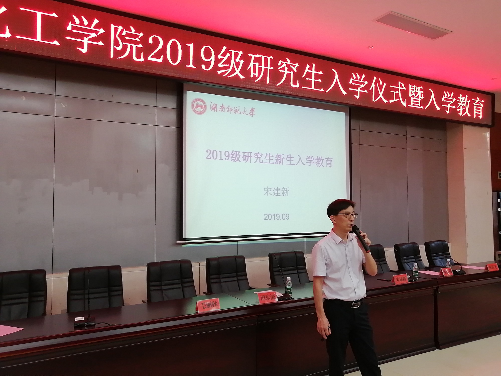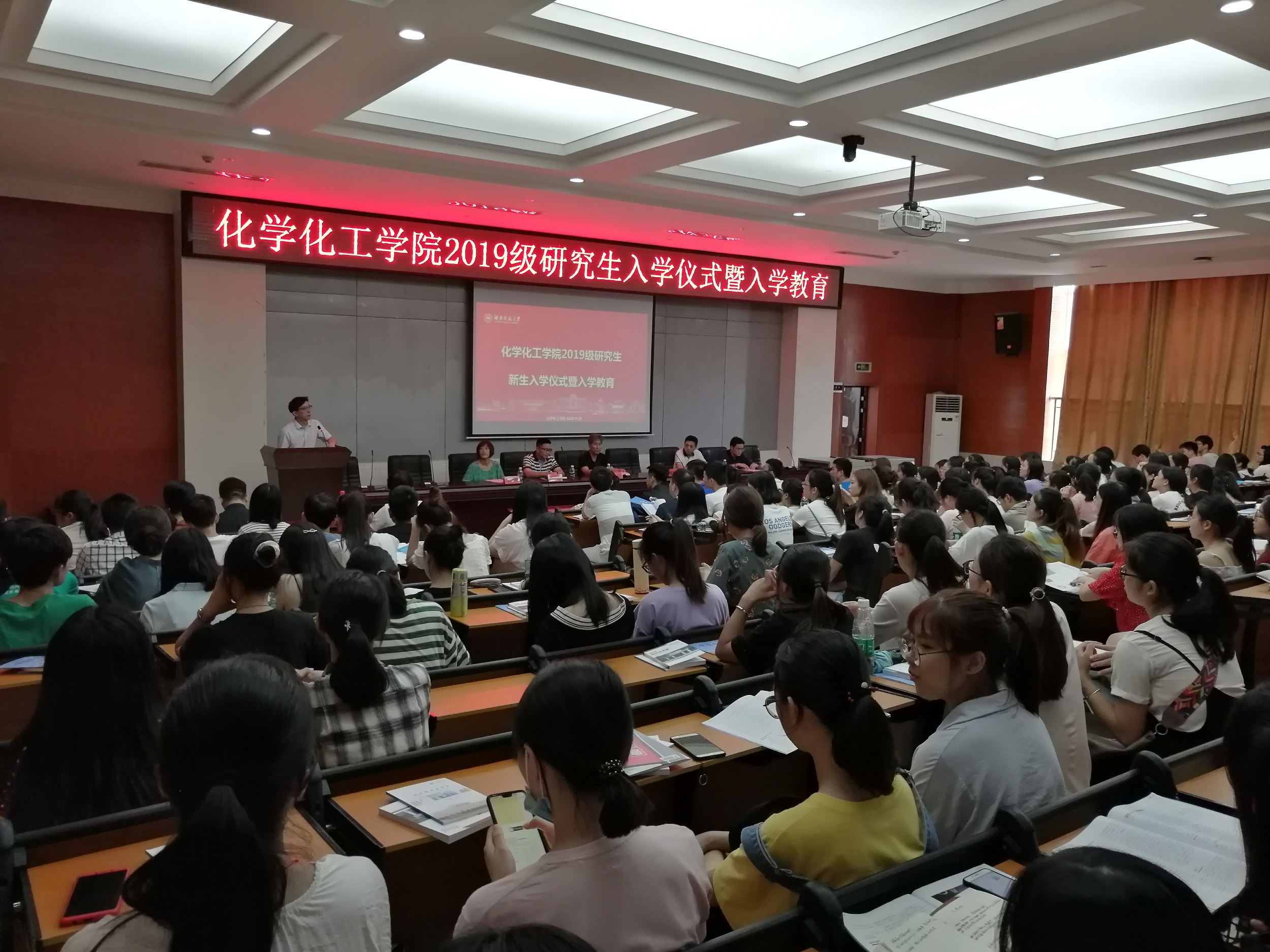 2019年9月11日下午15:00,2019级研究生新生入学典礼暨新生入学教育在我院新楼二楼报告厅召开。出席此次会议的有:化学化工学公司党委书记于风江、副经理宋建新、副经理谭东波、党委副书记耿自强、常务副主任毛丽秋、研究生导师代表倪新龙,以及2019级全体新生。会议由副经理宋建新教授主持。