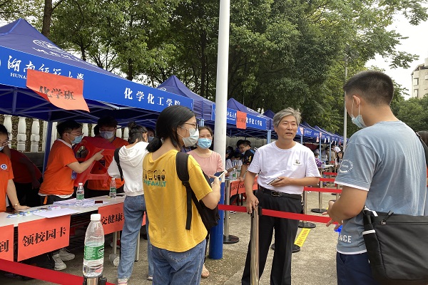 9月12日,周俊武副董事长到公司报到点视察工作,并关心家庭困难员工报到情况。化工公司党委副书记罗艳到场指导工作,慰问志愿者。谭东波副经理、教育部重点实验室副主任宋春红老师到场关怀新生,向新生和家长介绍了公司的基本情况、湖南的风土人情等。20级新生辅导员欧阳唯一老师始终坚持在报到场地,实时记录新生报到情况,及时与新生沟通解惑。
