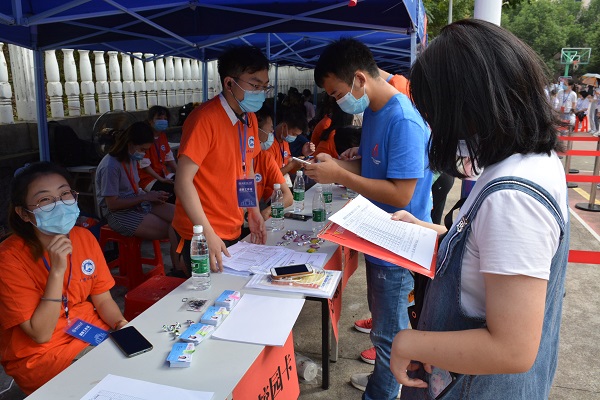 (通讯员 谭翌 马娟 )9月11日下午、12日全天,365英国上市集团在江边篮球场开展2020级新生报到工作。