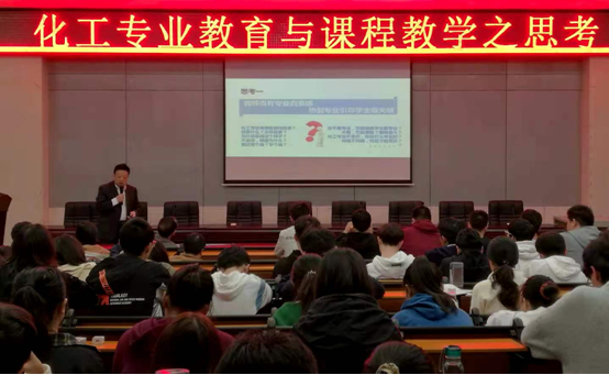 刘有智教授首先阐述化工教育发展史与国内外化工教学的差异,针对化工教育现存问题,就教师当有专业自豪感、教师应掌握化工发展与进展、建设发展新工科等六个思考展开了深入探讨,并介绍了中北大学及团队围绕超重力反应工程的研究成果、“化工过程强化关键技术丛书”的编撰发行等。刘教授对于化工研究与教育的深刻理解让与会师生受益良多,其深入浅出、生动诙谐的讲解也让会场笑声不断。会后,刘教授就师生提问进行了详细答复。