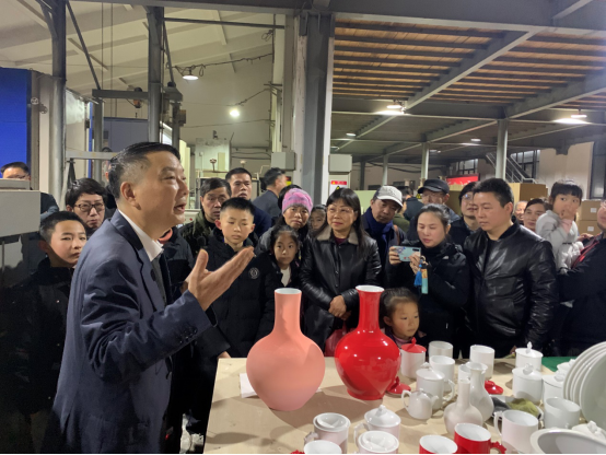 随后,尹彦征带领各位员工参观了中国红瓷器工厂及陈列室。尹彦征指出,对于中国红瓷器的烧制技术,长沙大红陶瓷公司一直处于在世界的领先水平,我们摆脱传统的瓷器烧制方法,另辟蹊径,采用化学方法、利用电研究烧制出了中国红瓷器。值得骄傲的是,中国红瓷器是由我们与国家有关部门一起定义的,并且上个月烧制出来的中国红国徽即将悬挂于天安门城楼上,解决了国徽上传统的红色涂料上色带来的诸多问题。