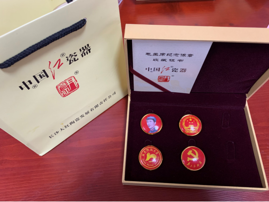 长沙大红陶瓷公司的周老师指导各位员工亲自动手制作了中国红徽章,包含毛主席纪念像章、国徽、党徽、校徽,以此来缅怀伟人、感念先烈。