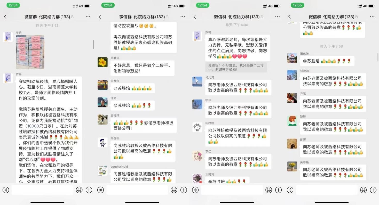 广州彼西络科技有限公司是一家涉及生物、化学、医疗等方面的综合型企业,是国际型进出口实验室产品渠道供应商。公司方面负责对接的陈女士表示:“公司一直心系湖南,心系长沙,心系我们的老师和同学,一点心意,望疫情早日过去!”在得知广州彼西络科技有限公司和苏胜培教授这一雪中送炭的善举后,公司全体师生为广州彼西络科技有限公司送上感谢信,并对苏胜培教授和广州彼西络科技有限公司表示感谢并致以崇高的敬意。