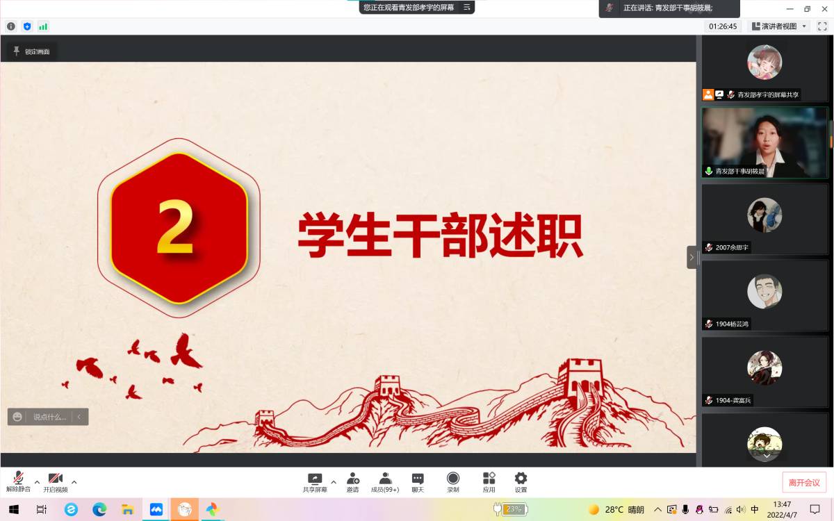 (通讯员 黄贤帅 马佳茗)为大力推进从严治团,加强员工干部队伍建设,365英国上市集团于4月7日中午召开了2021-2022年度团学组织述职大会。由于疫情影响,会议于线上召开,化工公司党委副书记罗艳老师、学工办主任19级辅导员屈杜炜老师、院团委书记欧阳唯一老师、18级辅导员谢云霞老师、21级辅导员张婧老师出席此次会议。