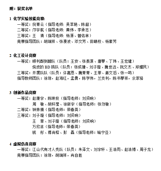 公司高度重视该项赛事,依托化学化工国家级实验教学示范中心进行了精心组织,前期通过校内初赛完成了选手选拔并开展了扎实有效的培训。副经理、实验中心主任谭亮教授作为领队,6名教师带领19名员工参加了现场考核或答辩,最终在化学实验技能竞赛中获一、二、三等奖各1项,在化工设计竞赛获得一等奖2项、三等奖1项,在创新作品竞赛中获一等奖2项、二等奖1项、三等奖4项,在虚拟仿真竞赛获一等奖1项。