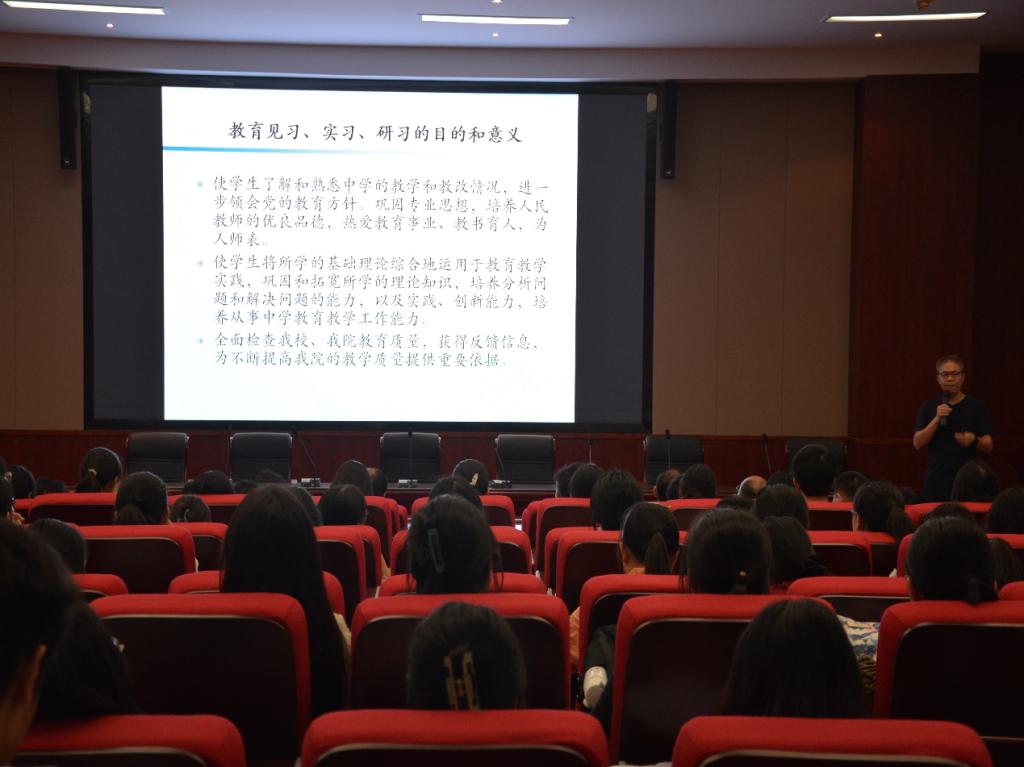 梁云教授在主持本次会议时围绕教育实习的目的与意义、要求、具体安排、成绩评定等四个方面展开详细阐述,并逐一介绍了各实习队伍指导老师和各实习分队员工分配等情况。他希望同学们在实习过程中要严格遵守纪律,注意安全,勤于思考,真正把所学知识运用到教学实践中。