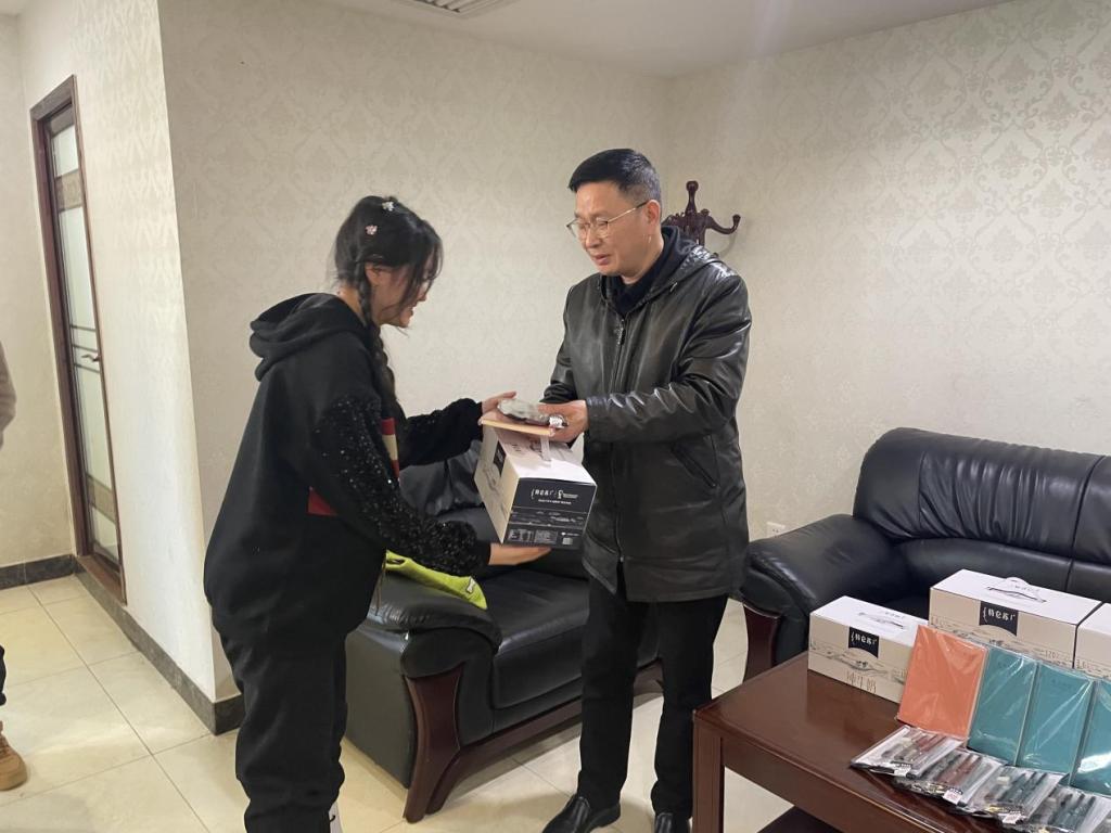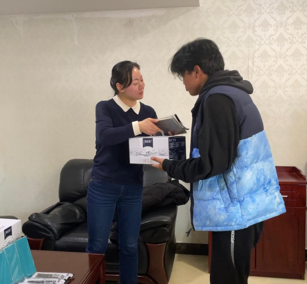 藏族同学们一一进行了自我介绍,并感谢公司和领导老师们的关怀,表示一定珍惜学习机会和大好前途,将自己的所学致力于家乡的经济发展和繁荣。随后,谭东波、段婷代表公司给各位藏族同学送上新年礼物。