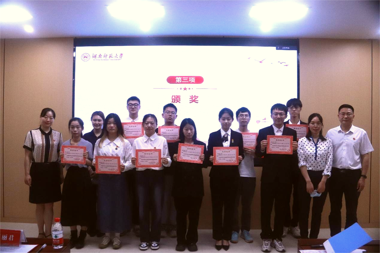 仪式上,肖丽君宣读表彰名单,与谭东波、段婷一同为获奖员工颁发奖状。