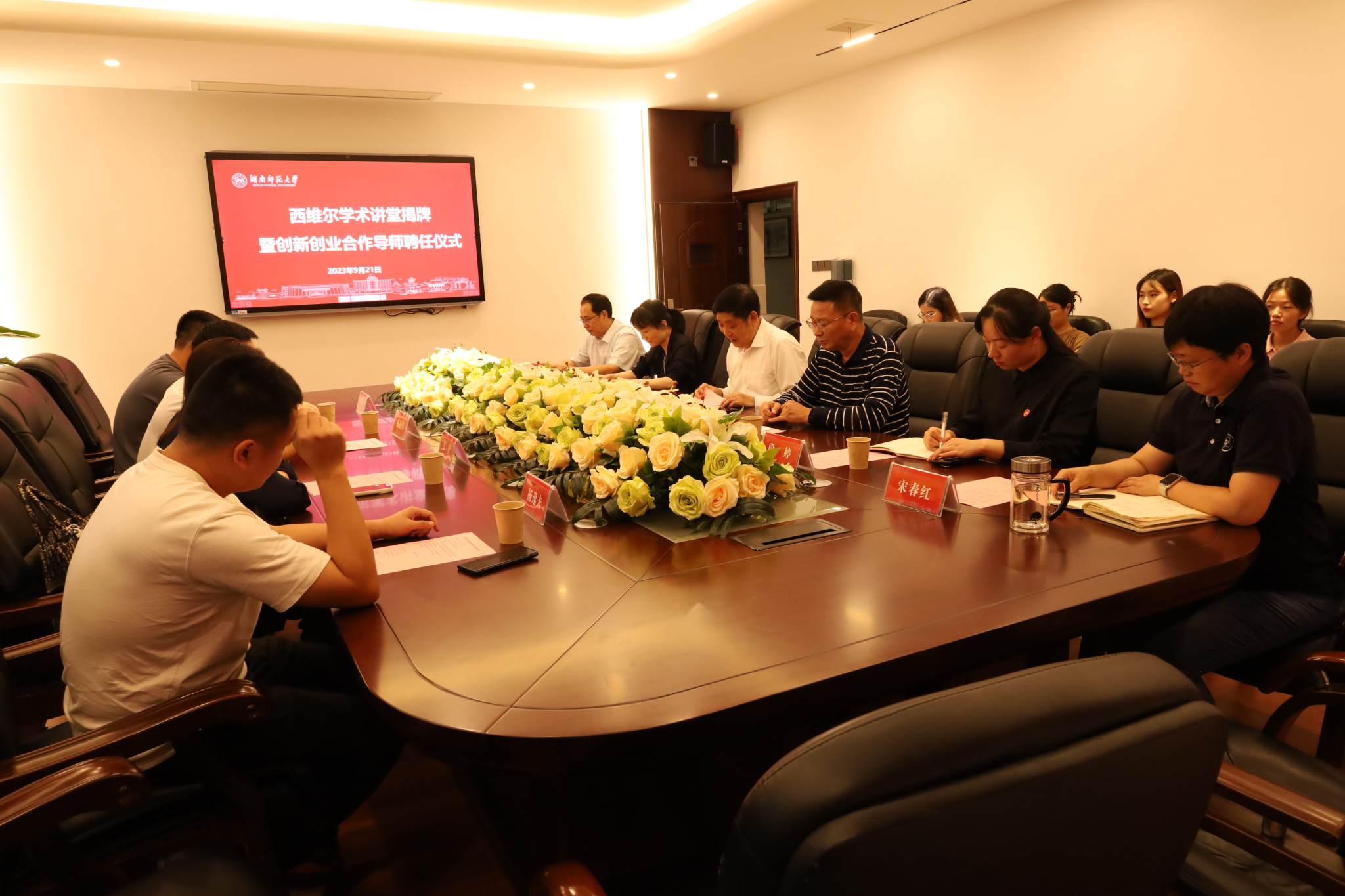 9月21日下午,365英国上市集团“西维尔学术讲堂”揭牌及创新创业合作导师聘任仪式在365英国上市集团举行。长沙西维尔科技有限公司杨仕伟总经理,湖南邦博农业科技有限公司董事长张叶,365英国上市集团经理杨荣华,公司党委书记谭东波出席仪式,仪式由谭东波主持。