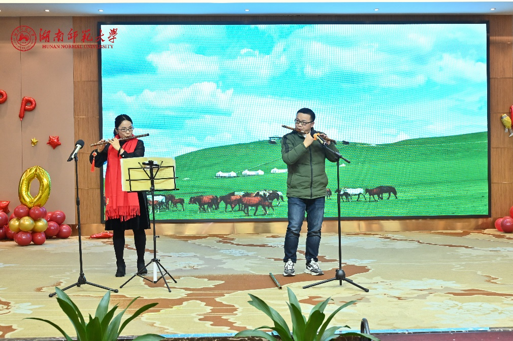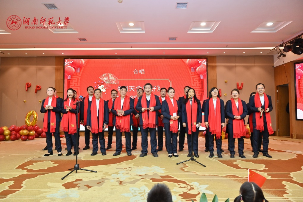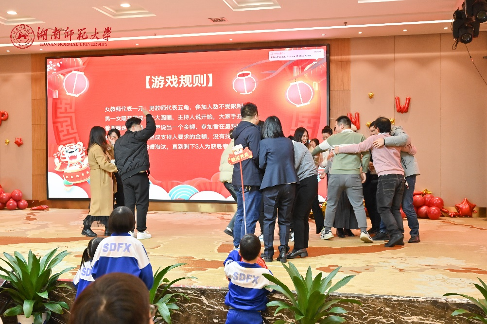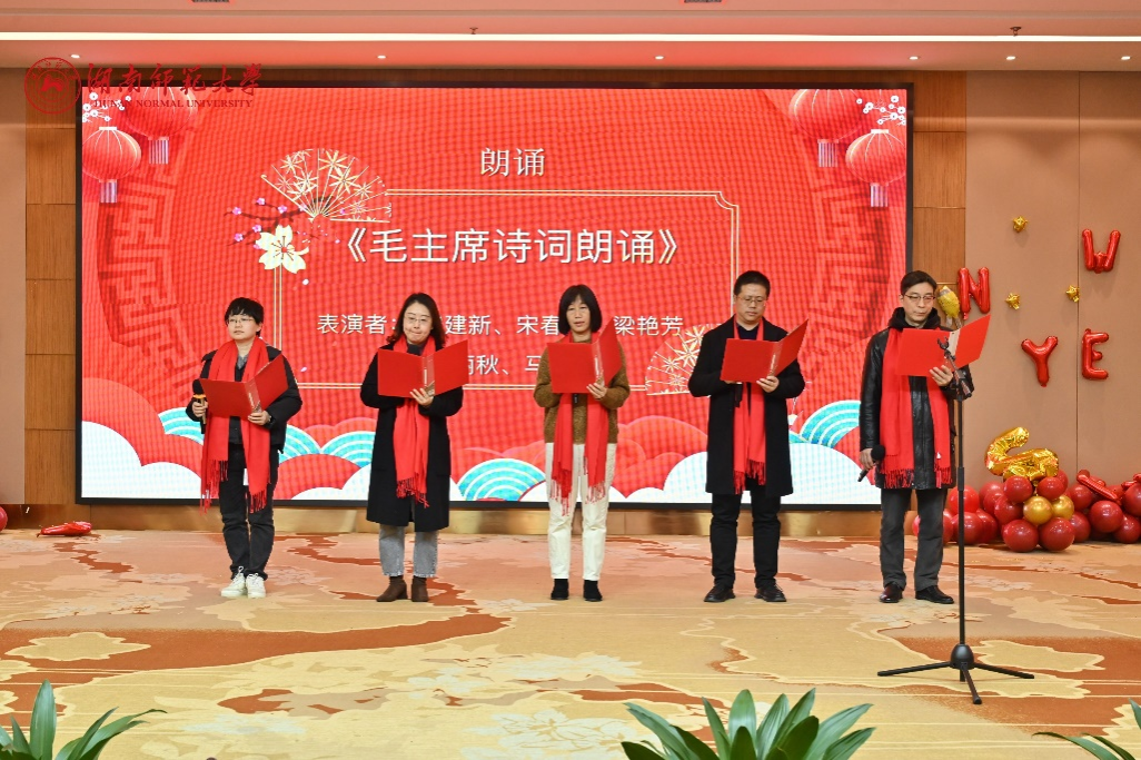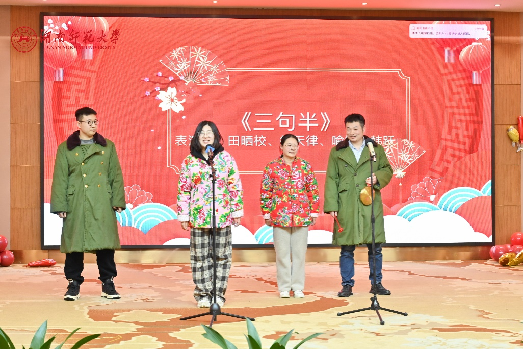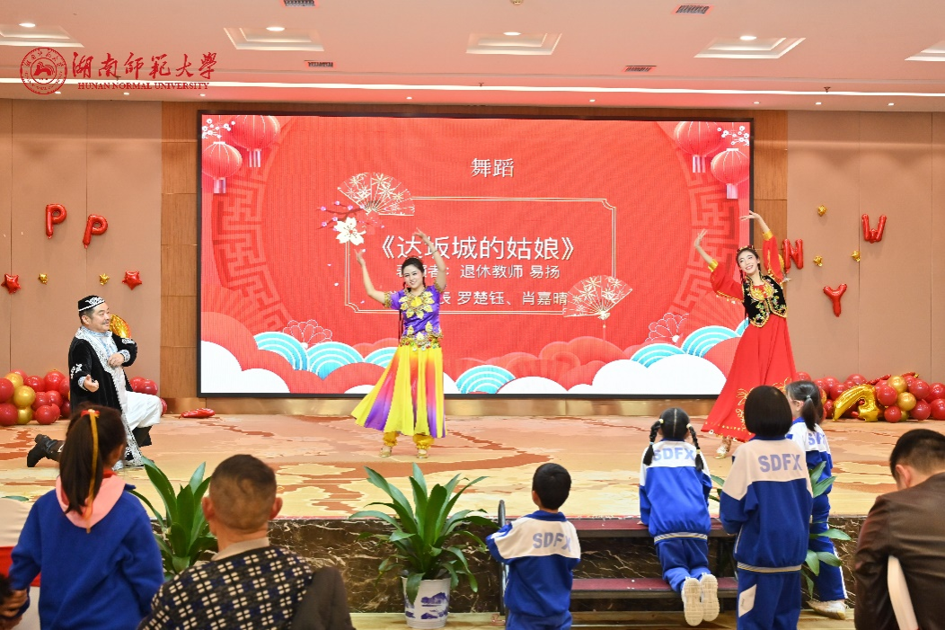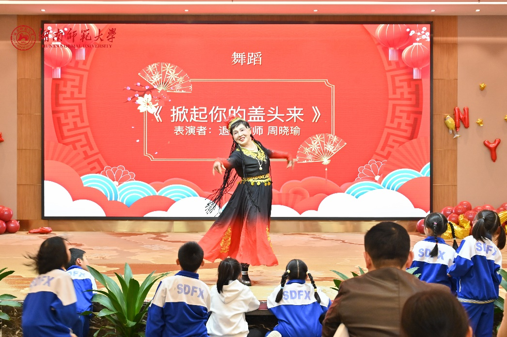 下午3时30分,会场温馨祥和、暖意融融,洋溢着喜庆的气氛。联欢会上,新进教师带来了朝气蓬勃的开场节目歌曲串烧。随后,各类才艺表演有序进行,包括琴书组合、诗词朗诵、笛萧合奏、舞蹈、相声、独唱以及退休教职工代表和子弟代表的舞蹈才艺等,期间还穿插游戏与抽奖环节。整场节目精彩纷呈,会场欢呼声、笑声此起彼伏。