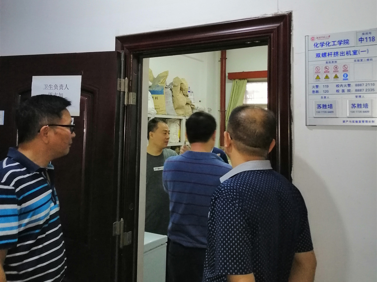 9月6日上午,由校资产与实验室管理处、科技处、教务处、保卫处组成的检查组对公司危化品安全管理工作进行了专项检查,公司党委书记于风江,副经理谭东波、谭亮等陪同检查。