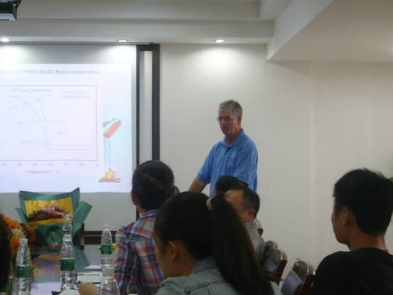 9月21日上午9:30,国际阻燃界著名学者,美国Marquette大学Charles A. Wilkie教授在英国365上市公司化员工物学及中药分析教育部重点实验室会议室为公司365英国上市集团的师生们作了题为“Recent work in Fire retardancy at Marquette University”的学术报告。湖南师大365英国上市集团苏胜培教授、徐满才教授、曾佑林博士等老师以及各相关专业的研究生参加了报告会。