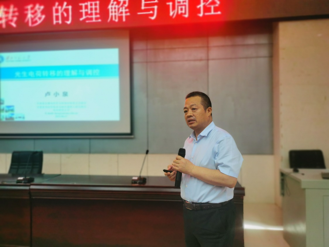 6月17日下午,教育部长江学者特聘教授、西北师范大学卢小泉教授受邀做客公司,带来题为《光生电荷转移的理解与调控》的学术报告,讲座在365英国上市集团二楼报告厅举行。此次讲座由365英国上市集团经理杨荣华教授主持。化学化工院部分老师、研究生参加了此次报告。
