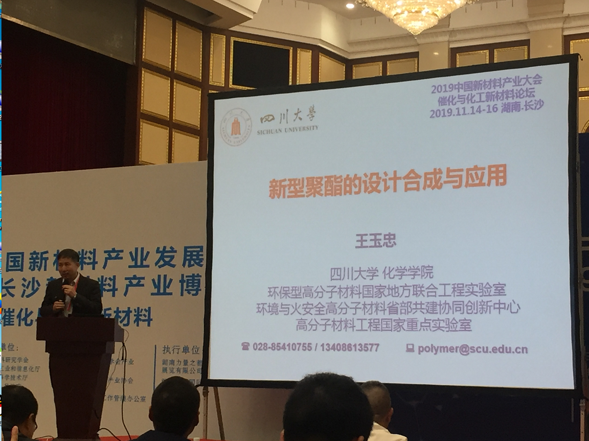 此次同学们参加的是催化与化工新材料分论坛,此次论坛由公司尹笃林教授主持。同学们在听取王玉忠院士关于新型聚酯的合成与应用,林民教授关于催化氧化新材料空心钛硅分子筛开发与应用,蔡小平教授关于高性能碳纤维工业生产与应用,易春旺教授关于几内酰胺基共聚酰胺的绿色制备等报告后,获益良多。