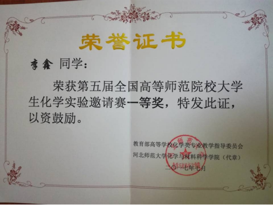 全国师范生化学实验竞赛一等奖