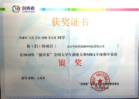 全国“创青春”老员工创业大赛银奖