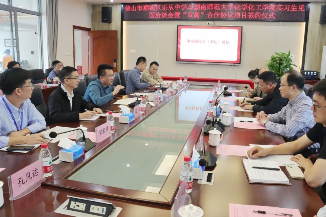 申水源董事长作总结性讲话:乐从中学将全力向实习老师提供生活上和教学工作上的帮助,请谭东波书记、谭亮经理、徐满才教授放心。此外,申董事长提出了几点建议,他希望实习老师和指导老师加强沟通,实习老师可以大胆地向指导老师请教,多听、多看、多问、多思考,同时树立安全意识和责任意识;希望指导老师对实习生严格要求,切实发挥好示范引领作用,耐心指导,共同进步。最后,申董事长特别强调双方可以探讨更多形式的互动,这次是一个开端,双方会在合作共赢的道路上越走越远!